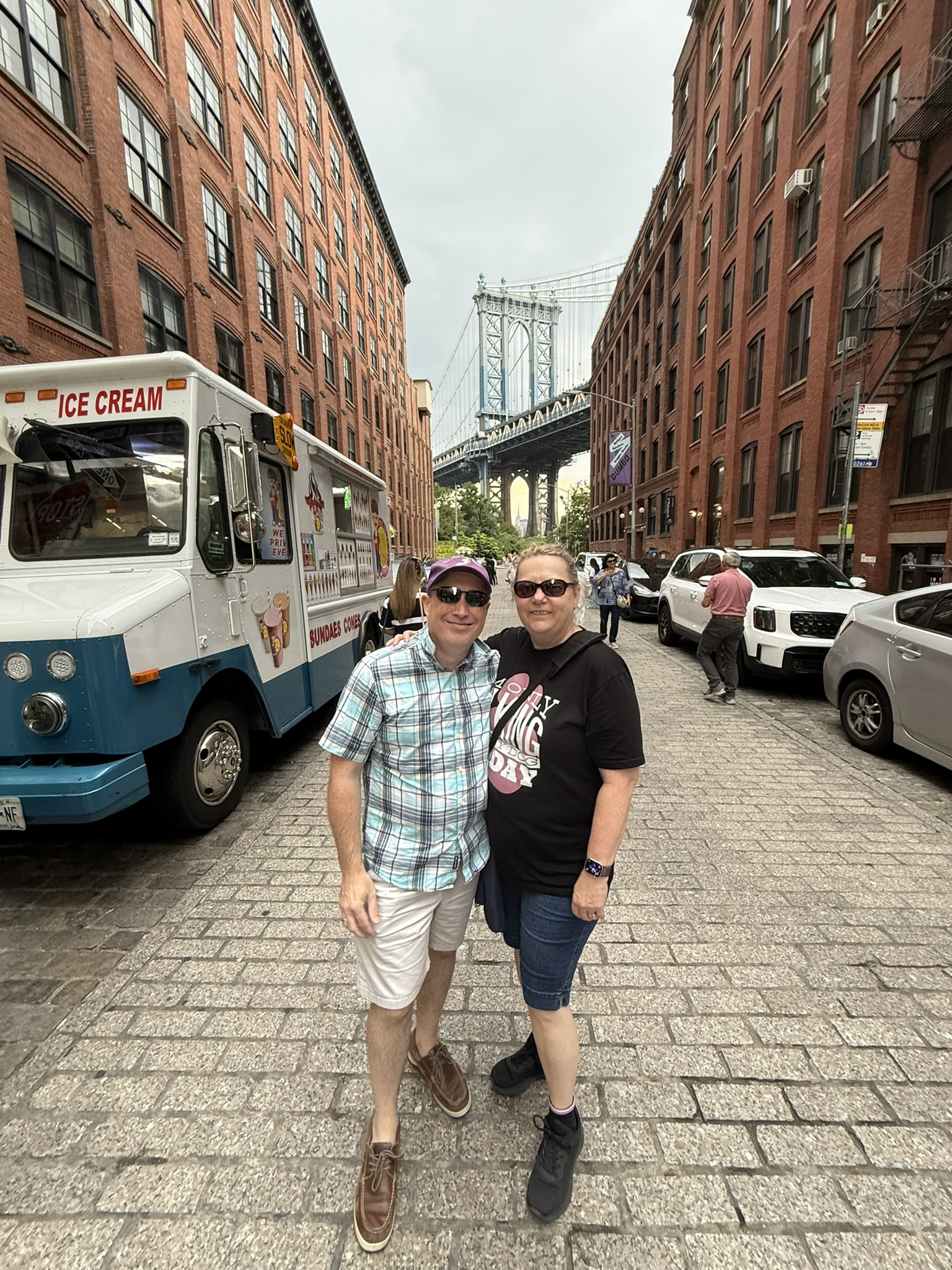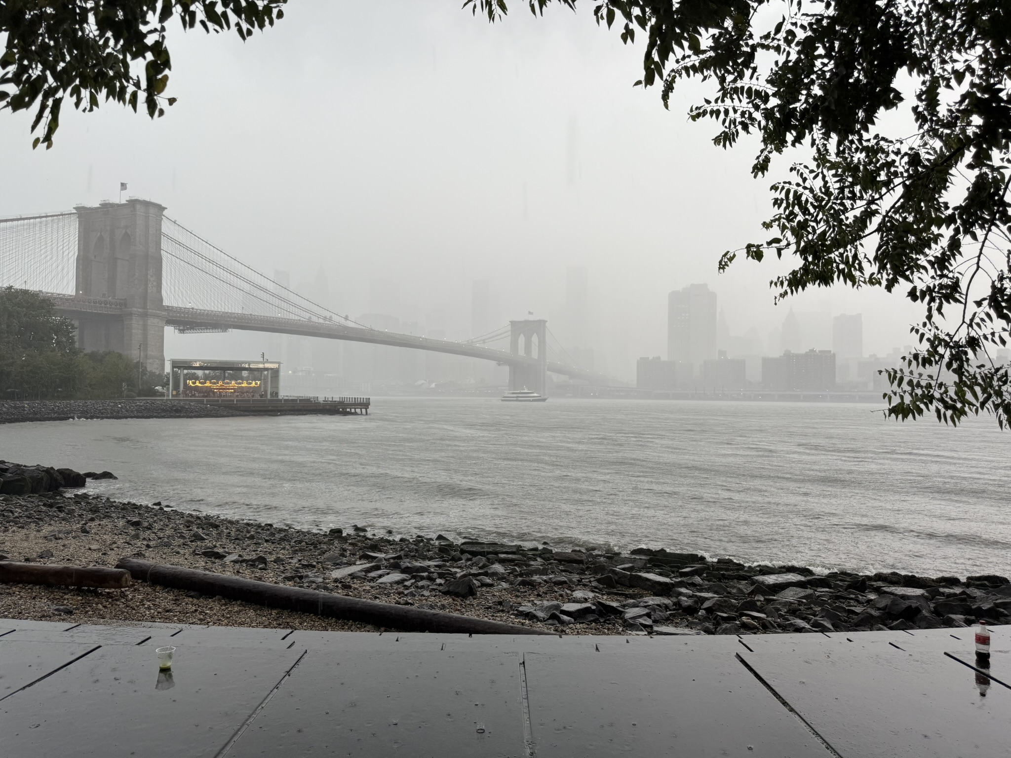 By 2pm we were ready for our Big Bus Tour – this time heading to Brooklyn’s Dumbo district. The weather had other ideas though. It was hot, sticky and heavy with that unmistakable storm energy. Severe thunderstorm warnings were already in play, but we had our wet weather gear just in case.