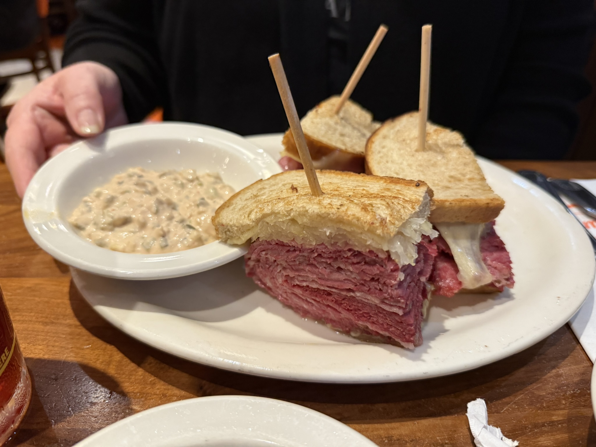 Later that evening we wandered back across the road to Juniors, this time for dinner. I went for the fried chicken while Ros tucked into a Reuben sandwich. The serves were absolutely huge – proper American-sized plates that left us both staring at the table wondering how we’d ever finish. To wash it down, I tried a Dr Brown’s cola while Ros went adventurous with a Dr Brown’s Cherry Cola. Mine was crisp and refreshing, but hers? Let’s just say it tasted suspiciously like cherry-flavoured cough medicine.