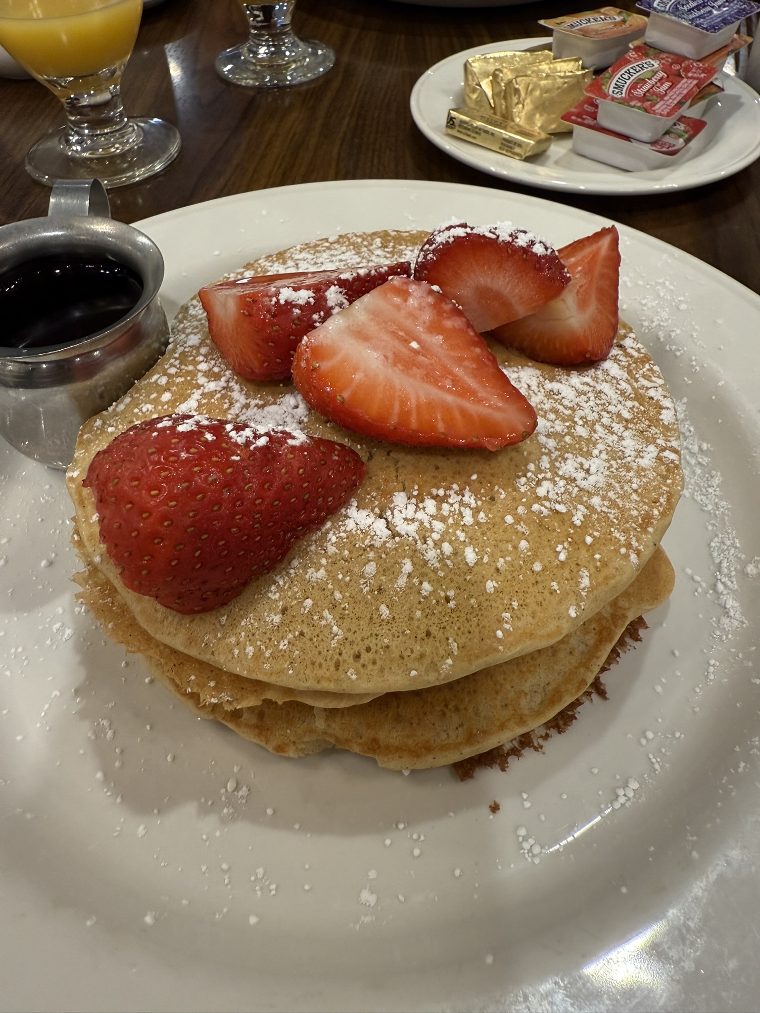 Today would be our crash course in Washington DC history. As part of our Travelmarvel tour we had a sightseeing trip scheduled for the morning. But firstly, breakfast at the Washington Plaza Hotel where we were staying. It was simple, but nice. I went with flapjacks topped with strawberries while Ros went with bacon and eggs on toast. The ladies at the next table warned that the restaurant was running out of teapots thanks to the sheer number of Aussies dining at the same time – so good luck if you were hoping for tea. I was perfectly happy with my orange juice while Ros enjoyed her coffee.