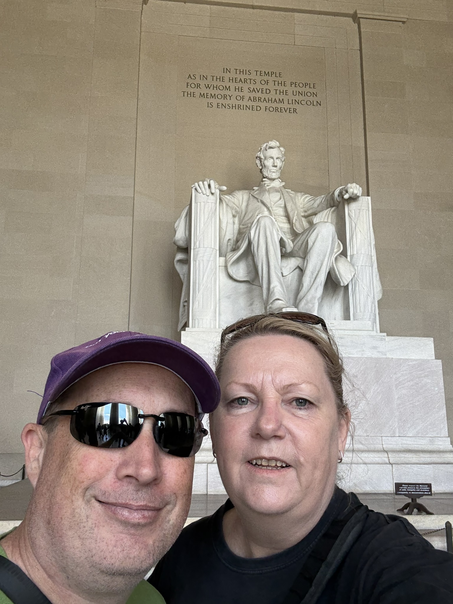 Our next big stop was the Lincoln Memorial. Dedicated in 1922, the memorial was built to honour the 16th President of the United States, Abraham Lincoln, who led the country through the Civil War and pushed for the abolition of slavery. Inside sits Daniel Chester French’s 19-foot statue of Lincoln, gazing out across the Reflecting Pool towards the Washington Monument. Surrounding the statue are inscriptions of his Gettysburg Address and Second Inaugural Address, texts that have come to symbolise unity and equality. Even amid the crowds, it felt like one of the more powerful and dignified sites of the day.