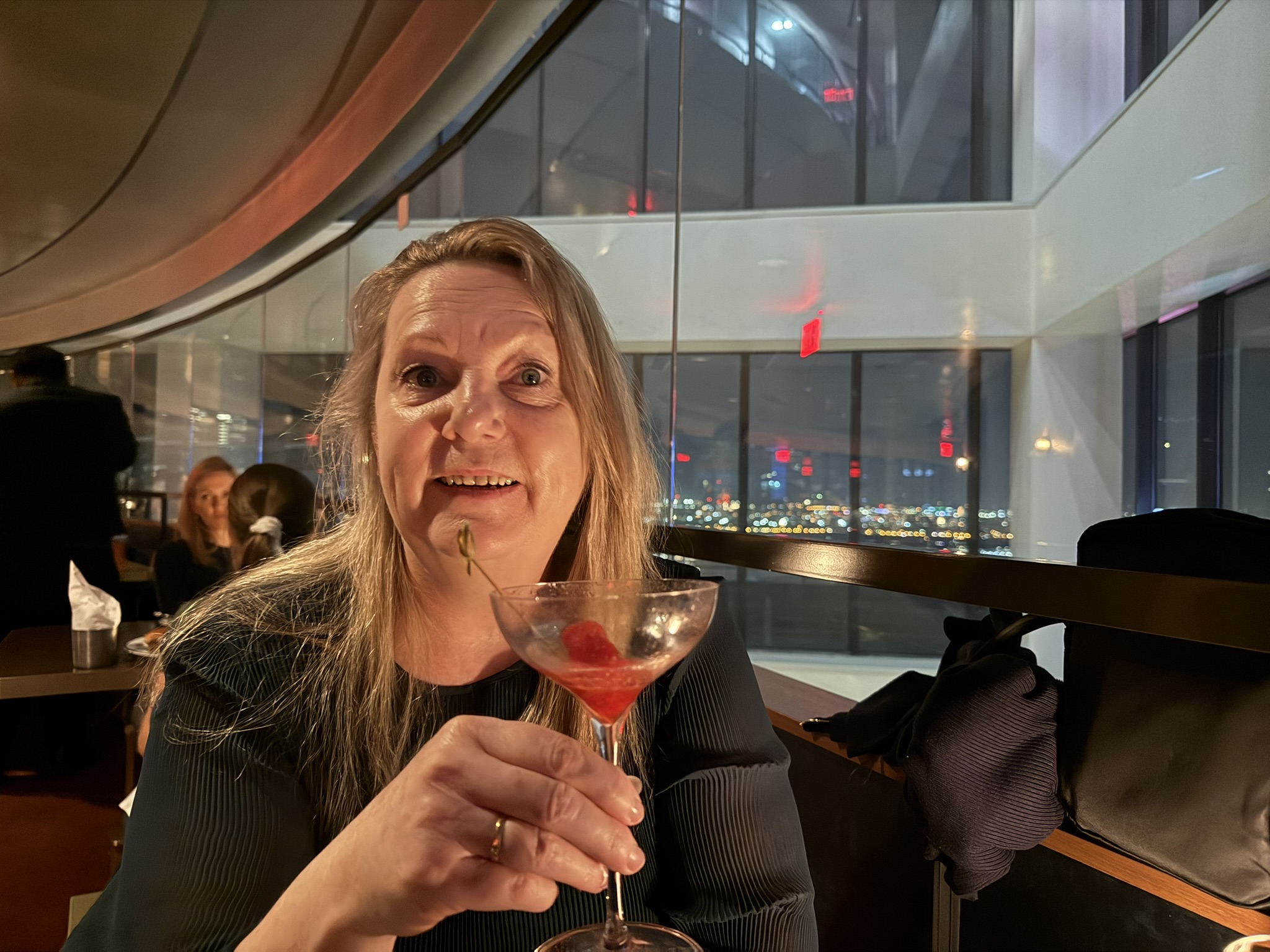 For dinner we headed up to the top of the Marriott Marquis to The View restaurant. True to its name, the revolving floor slowly turned us through a complete rotation in about ninety minutes, showing off Manhattan from every angle. One moment we were looking straight across to Times Square with its neon glow, the next we were gazing at the twinkling lights of the Hudson. We spotted landmarks all around the city, each view revealing something new as the night went on.